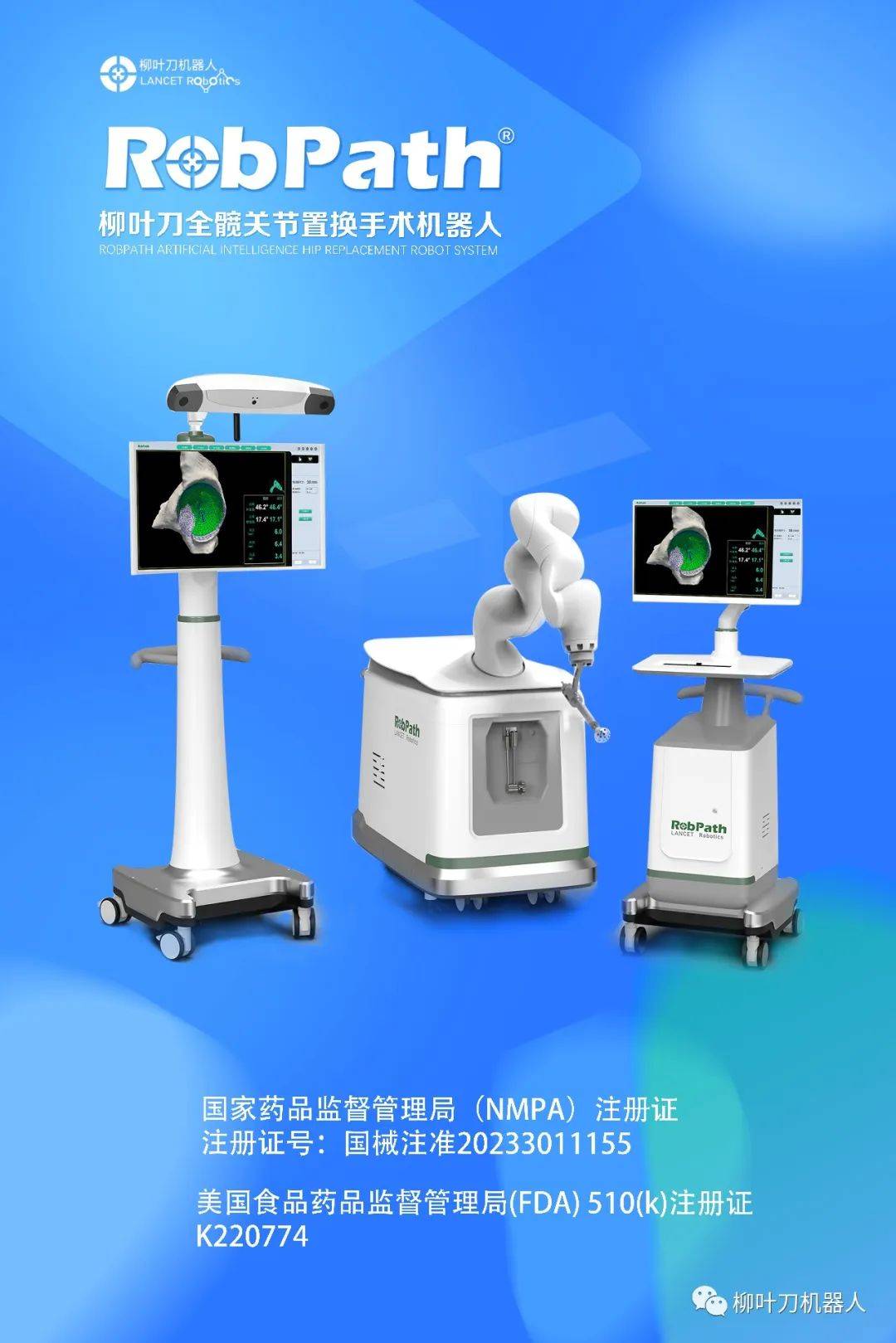 2023年8月10日,国家药品监督管理局批准了杭州柳叶刀机器人有限公司的髋关节置换手术导航定位系统注册申请。