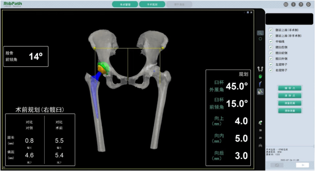 3、柳叶刀机器人系统通过将骨盆注册信息与术中髋臼假体位置和角度的实时测量相结合,并通过预测术后下肢力线等参数,最终为每个患者实现个性化的精确手术。