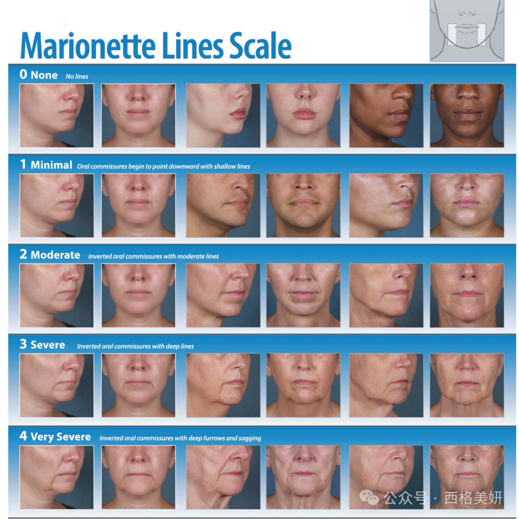 本研究描述了一种新的 Allergan 光数字量表的开发和验证,用于木偶纹严重程度的临床评估和评级。在2020 年 1 月至 2021 年 3 月期间进行的木偶纹量表开发和验证,共有 160 名 18 岁以上的男性和女性,具有多种皮肤类型(Fitzpatrick,I-VI)、种族被招募用于规模开发或现场验证。所有受试者均提供书面知情同意书。规模开发和实时规模验证的注册标准相同。研究设立了相应的纳入和排除标准,并进行了医生团队的进一步评估。