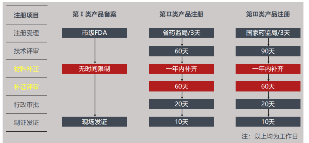 表2 第Ⅱ、Ⅲ类医疗器械产品注册周期参考
