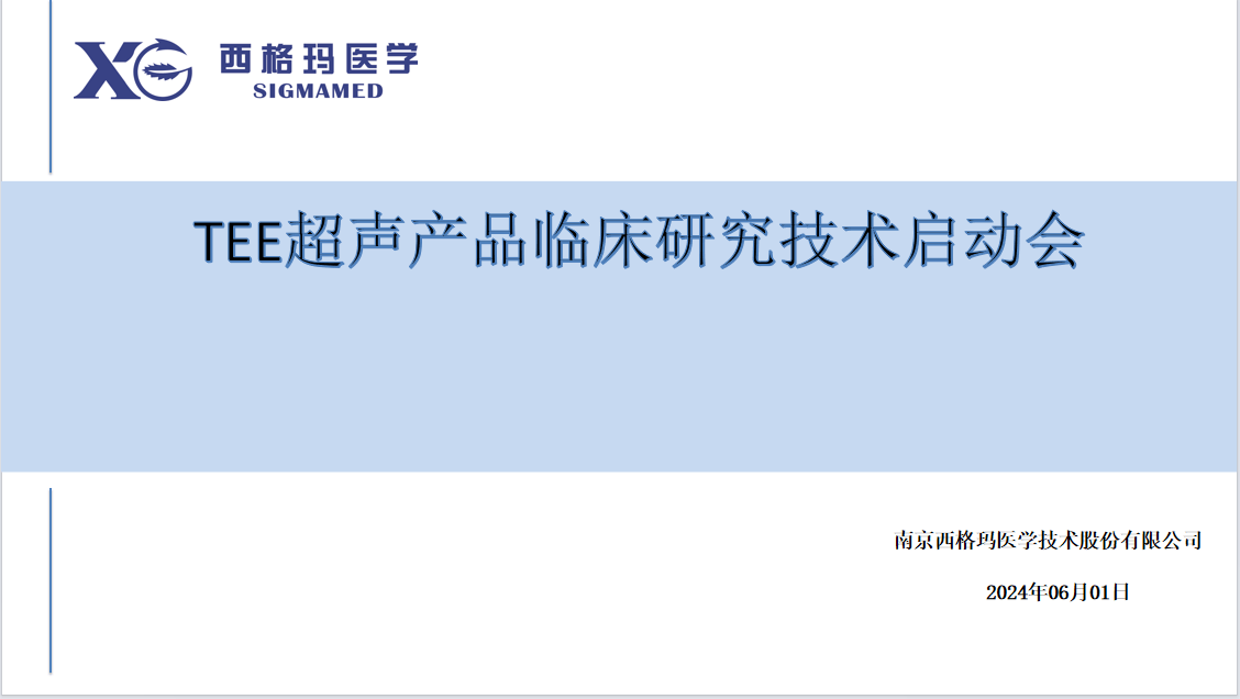 2024年6月01日,早上09:00, 南京西格玛医学各部门利用周六时间,加班召开了TEE超声产品临床研究技术启动会。临床总监,法规总监、医学经理、注册经理等相关人员等参加了研讨会。