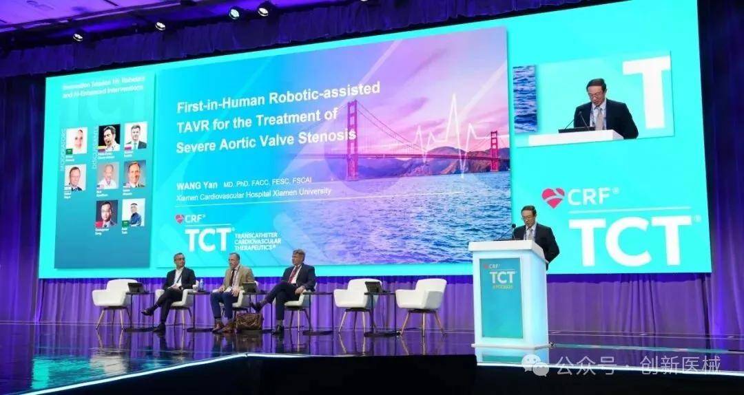 2025年10月28日,厦门大学附属心血管病医院(简称“厦心医院”)王焱教授在美国旧金山第37届美国经导管心血管治疗学术会议(TCT 2025)首次向全球同行展示中国原创的ReachTactile®手术机器人辅助经导管主动脉瓣置换术的可行性临床试验结果:患者平均年龄72.4岁,均为主动脉瓣重度狭窄。术后即刻技术成功率为100%,机器人完成的全部TAVR系统从进入人体到撤出过程,平均时长15分钟。目前5例患者均已完成30天随访,均无主要心脑血管事件的发生,人工瓣膜血流动力学指标符合治疗预期,无延迟的并发症出现。